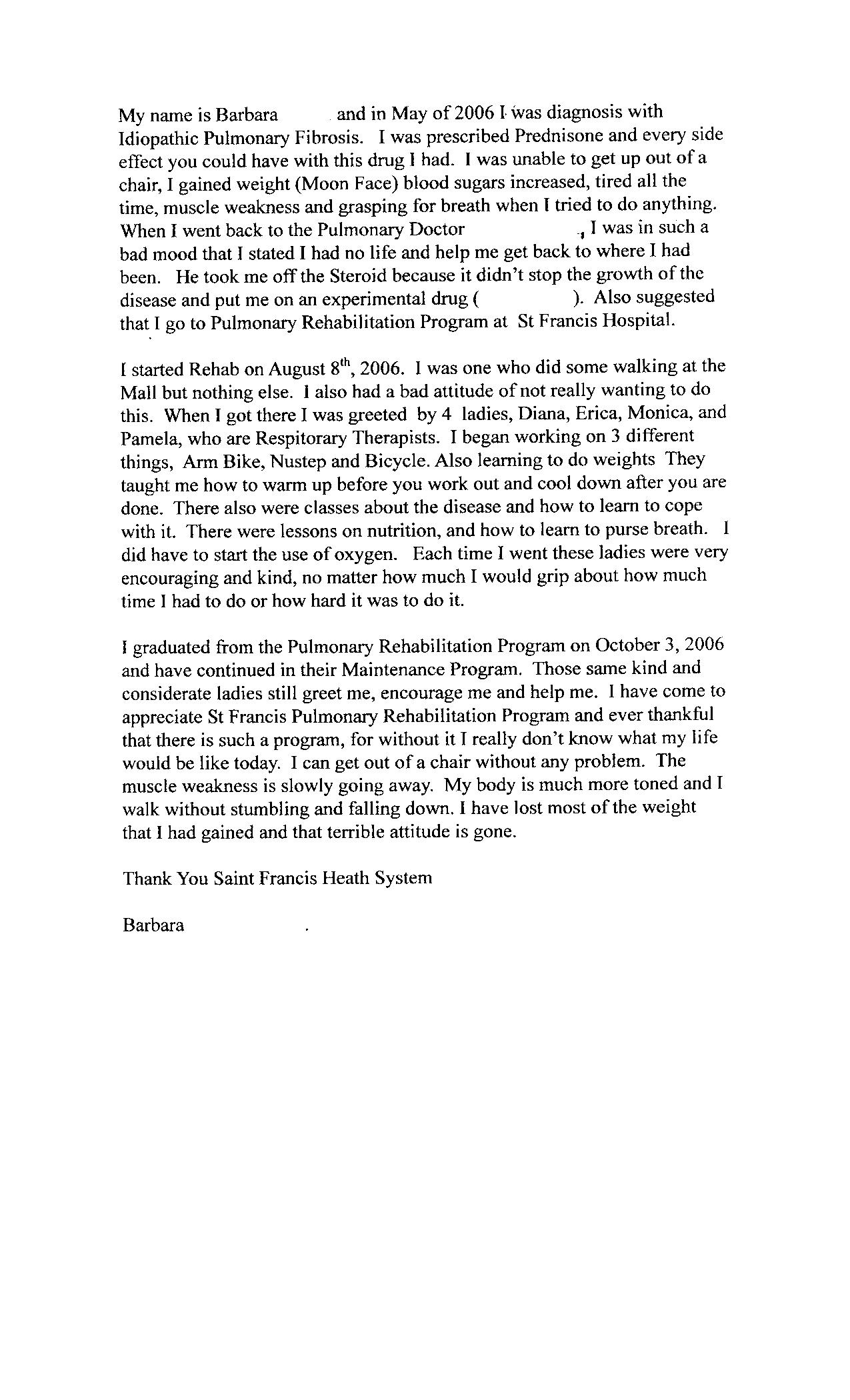 Pulmonary Rehabilitation is a comprehensive therapeutic program aimed at individuals with lung disease to achieve their maximum, level of independence. This is obtained through supervised exercise sessions with monitoring and education provided by a trained team of professionals. The program is individually tailored based on medical necessity and is six to twelve weeks with sessions two to three times a week. Benefits of Pulmonary Rehabilitation: